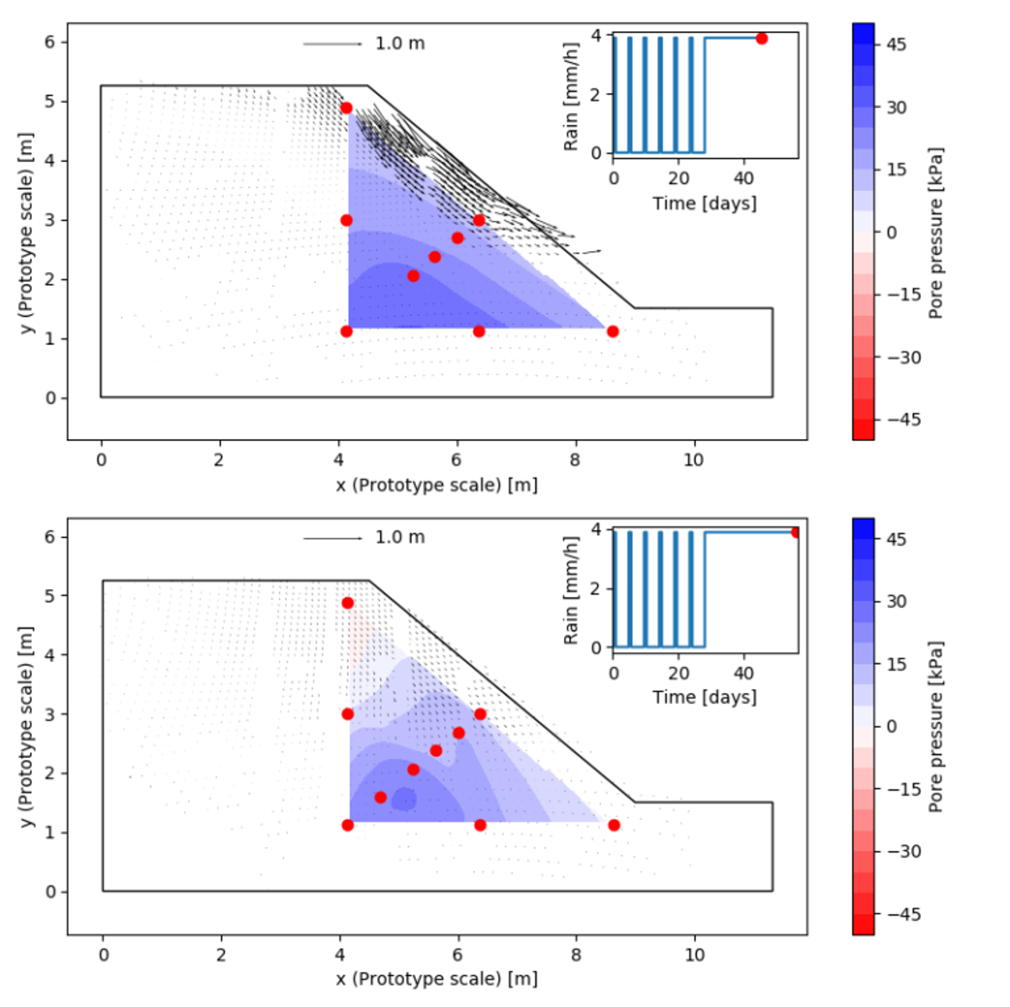 Example of modelling of a centrifuge test with vegetated slope under extreme rainfall (presentation by prof. Jonathan Knappett – Dundee University)