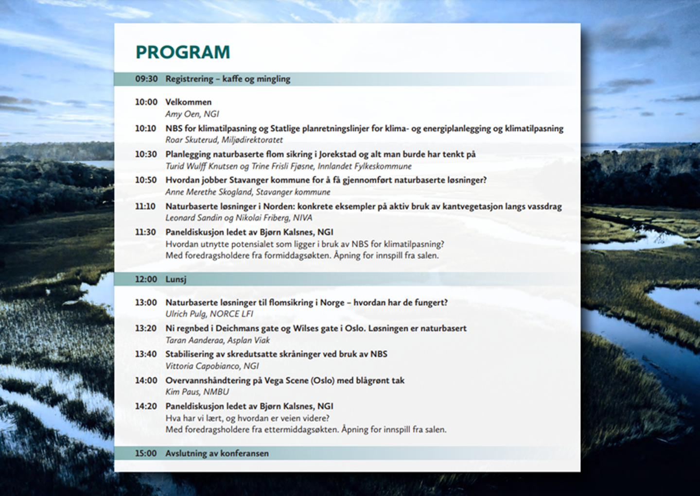 More info can be found here: https://www.ngi.no/Markedsomraader/Naturfare/Arrangement/Naturbaserte-loesninger-for-klimatilpasning-Nasjonal-konferanse-23.-november-2021